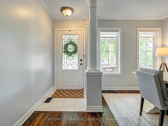 OFFERS ANYTIME with flexible closing as early as July 31 if needed. OPEN HOUSE Sat June 22 from 2:00 - 4:00. Curb appeal! All brick 3 + 2 bedroom residence on one of Brooklin's nicest streets. Limited traffic in this circle that is great for playing kids and walking dogs. Loads of living space in this three level home. The main floor of the residence includes hardwood floors and smooth ceilings and includes a powder room, great room currently being used as a formal dining room, plus a large open concept space with a kitchen, breakfast area and living room. The living room has a gas fireplace and is perfect for entertaining or family chats while preparing supper. The kitchen has a quartz breakfast bar and recently purchased stainless steel appliances. New, neutral treatments cover the windows. Beautiful hardwood stairs leads you to the upstairs that features three large bedrooms, a convenient laundry room, and two full bathrooms, including the master ensuite. The master also has a generous sized walk-in closet. New (2023) plush carpet in upstairs bedrooms for comfort underfoot. Finished basement has a cozy second living area, shelving, full 3 pc bathroom and two additional bedrooms, one of which is currently being used as an exercise room. Front of home has interlocking for ease of maintenance. Back yard oasis has interlocking area for dining, covered deck area for seating, playhouse for children (can be removed upon request), mature garden, and window boxes where you may plant your herbs, tomatoes and lettuce for summer cooking. New roof in 2023. A short walk to greenspace, parks, schools, the library, downtown restaurants and ice cream shops. Take a stroll down to the farmers market on Saturday mornings. Come enjoy the best Brooklin has to offer!