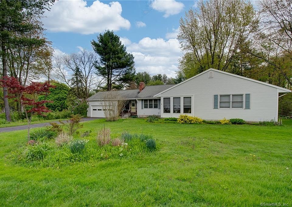 Well maintained 3-bedroom Ranch, set on a beautiful 1.11-acre lot in Windsor! This one-owner home features great updates like new siding, newer windows and new central air! Enjoy single-level living and a comfortable layout with hardwood floors throughout. Living room welcomes in plenty of natural light and features a cozy, wood-burning fireplace. Eat-in kitchen is equipped with plenty of cabinet space and new stainless steel appliances and leads to a large room, great for an oversized mudroom or family room. Sliders lead out to a tiered deck, overlooking a beautiful, spacious and private backyard with garden area and a tranquil brook running through. This home also features a lovely sunroom with vaulted ceilings and beams - it's the perfect spot for reading or enjoying a refreshing beverage! 3 bedrooms and a full bath complete the main floor. Partially finished walkout lower level adds more living space and versatility, great for a rec/play room or family room and includes a propane stove. A 2nd full bath and a craft room are also located in the lower level. Store lawn and garden tools in the shed and utilize the 2-car garage for covered parking! Located in a quiet neighborhood, with plenty of dining options close by and easy access to I-91 and Bradley International Airport. Tour this home today!