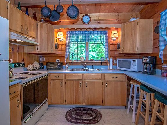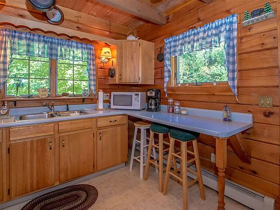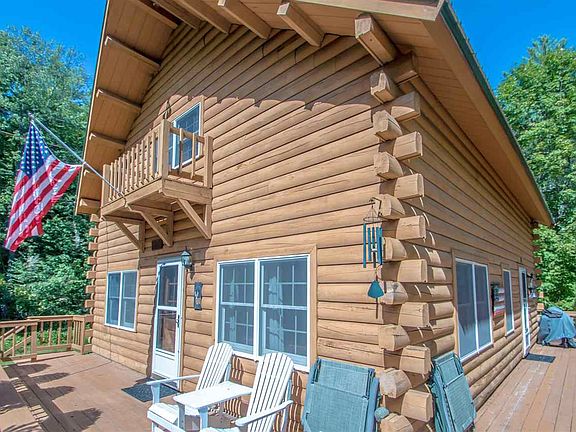 COUNTRY LOG HOME WITH FLARE LOCATED IN THE PEACEFUL, SERENE TOWN OF EFFINGHAM! Panoramic views of mountains in all directions along the way. Three bedrooms, two baths, open concept, log exterior, and soft pine interior. Open floor plan and large living area with grand wood stove for those chilly winter nights. The main floor offers a master bedroom with over-sized half bath, nice kitchen, and dining area. On the second level you will find bonus storage, as well as two guest rooms, full bath, and a loft overlooking the lower level. The basement offers additional work space, a second wood stove, and family room, if you like. Included in this price is a huge wraparound deck and four plus acres of privacy. Close to lakes, rivers, and mountains. Whether you're looking for your primary home or a sweet getaway, think about what this has to offer. Ski at King Pine (less than 15 minutes away) or maybe play a round of golf at Province Lake Country Club (10 minutes away) or Indian Mound Country Club (10 to 15 minutes away). Enjoy your days swimming or fishing in the Pine River. Kayak, canoe, or perhaps take a gentle walk in the nearby Pine River State forest. All this and completely furnished. Turnkey and ready for you to begin your next adventure. See you in Effingham soon!