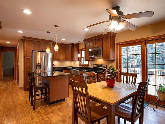 - Kit Dscrp: Pantry, Dining Area, Flooring - Hardwood, Countertops - Stone/Granite/Solid, Cabinets - Upgraded, Deck - Exterior, Kitchen Island, Stainless Steel Appliances, Open Floor Plan, Recessed Lighting, Remodeled, Slider, Exterior Access