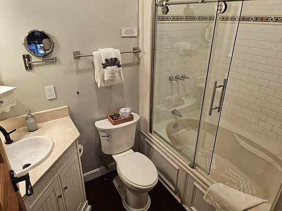 Private Suite with a seperate entrance, and a spa tub. Cozy, and located downtown Camden. This space is a short walk to all that this town has to offer. Property has a fully furnished living room, seperate bedroom, and private spa bathroom. No kitchen access with these suites. All Utilities are included: Water, Sewer, Gas, Wifi, One Parking Space, And Trash, One Breakfast Daily Included. No Kitchen Available. Mini Fridge Included.