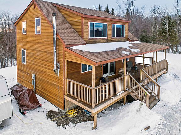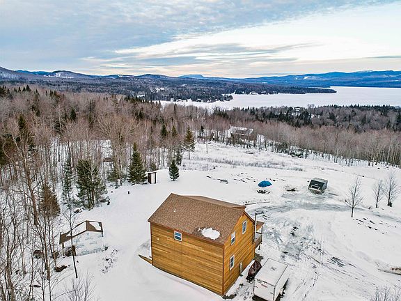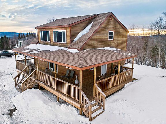Newly constructed cabin in Pittsburg NH with stunning panoramic views of First Connecticut Lake and Magalloway Mountain is now being offered! Sitting nicely on 2.79 acres, this 3 bedroom, 1 bath home with drilled well and state approved septic offers a great open concept main level with a nice kitchen, dining area, living room with stone hearth and wood burning stove.  You will also find a bedroom and bathroom on this level.  Upstairs are 2 additional bedrooms and a utility room for storage or laundry area potential.  This property is located in a prime location where everything the north country has to offer is just steps away.  If you like to fish, boat, swim, hike, hunt, snowmobile or ATV, this property is located in the heart of it all.  Enjoy your days out on your sled and your nights by the fire or your summer days enjoying the weather from your wrap around covered deck overlooking the view.  Don’t wait to view this amazing property!  Showings start Monday February 20, 2023.