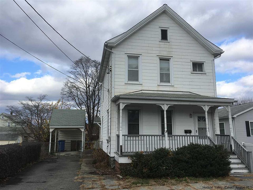 This classic Kingston home has very good bones, high ceilings, original unpainted woodwork, newer furnace and hot water heater and an expansive back yard. Paved and gated driveway with an open carport with tool shed and nice sized mudroom entryway leading to the eat in kitchen. The back bedroom features a large walk-in cedar closet. With a little polishing up, this will make a very attractive home in a charming well located neighborhood.