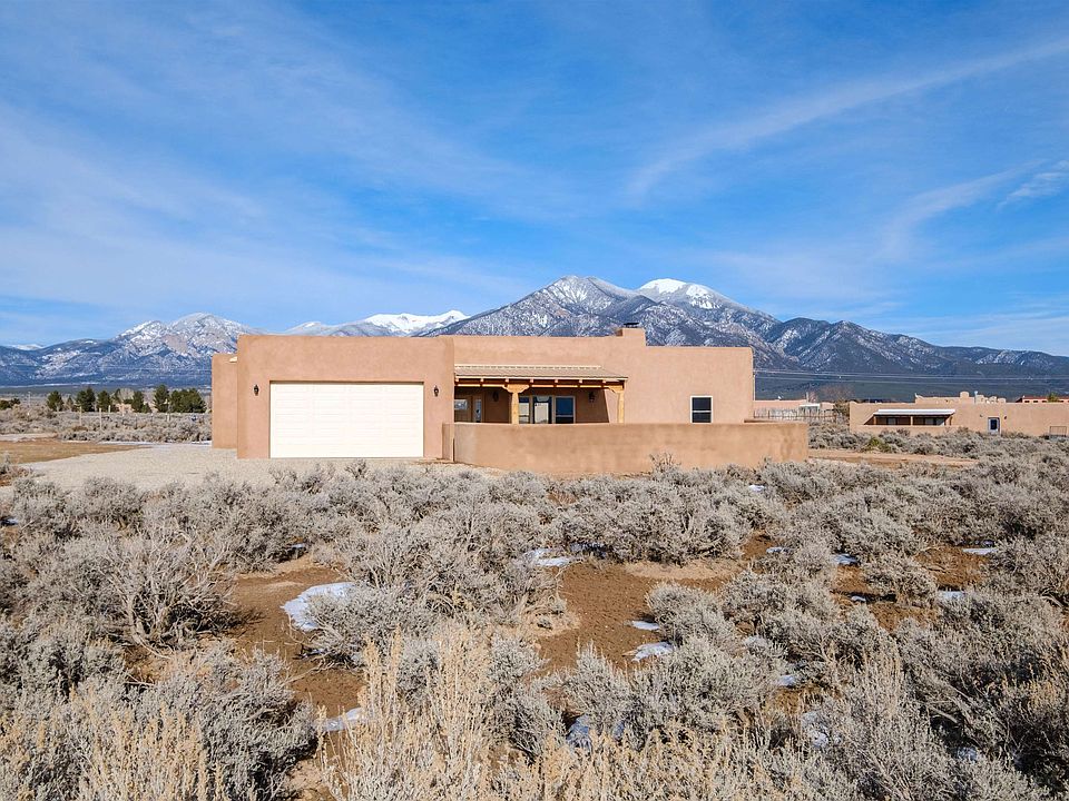 Property is listed with additional acreage to ensure the mountain views remain unobstructed. Located in the sought after area of Millicent Rogers and Eototo road, just four miles from Taos Plaza and seventeen miles from Taos Ski Valley. This newly built property includes a heated two car garage. High ceilings with large vigas through-out the house. Large windows with plenty of natural light. Stunning views of the Sangre de Cristo mountains!