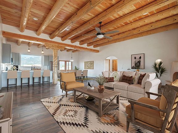 Whether you're on the hunt for a high-desert sanctuary to call your own or an income-generating vacation home check out this brand-new construction home in El Prado! Drawing inspiration from its stunning natural surroundings, its quintessential adobe exterior blends beautifully with the painted desert landscape and breathtaking Sangre De Cristo Mountains. Upon entering, discover a gorgeous interior defined by wood elements, from the viga ceilings and gleaming flooring. Admire the postcard vistas as you relax around the kiva fireplace in the living room. Create fantastic fare in the sunlit kitchen, equipped with stainless steel appliances, ample storage, and sleek granite countertops. Interior finishes: Wood ceramic plank flooring throughout the living space (including bathrooms and laundry room) and granite kitchen counters. Any recorded documents about this property are provided as a courtesy. Buyers should rely on thedocuments provided with title. Neither Listing Broker nor Seller warranty the square footage of the home or acreage of the property. If size of the home or acreage of the property is of material consideration to the buyer, then the buyers should have it measured and/or surveyed.