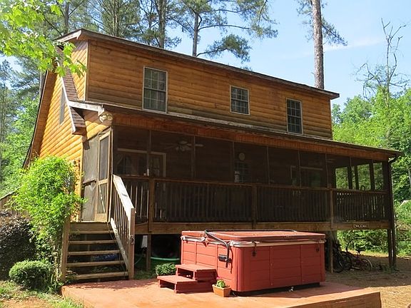 Just call this Log Cabin "my happy place" ......... drift wood walking sticks, turtle shells, and lots of treasures found right on the property line the covered back porch. It definitely has the "feel" of a place memories are made! The inside is surprisingly spacious and again has that "welcoming feel" of an open floor plan. The walk to the lake is gentle and peaceful. You may never see another soul from your dock just ducks, fish jumping and sounds of frogs and crickets. The 4 bedroom home is cabiny....open living / dining / kitchen, master on the main, wood walls, wood floors and wrap around porches.Application Process, Security Deposit and First Months Rent