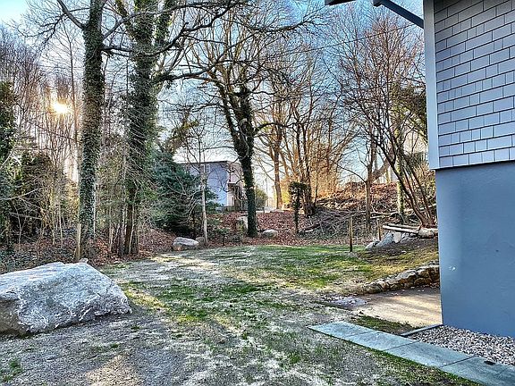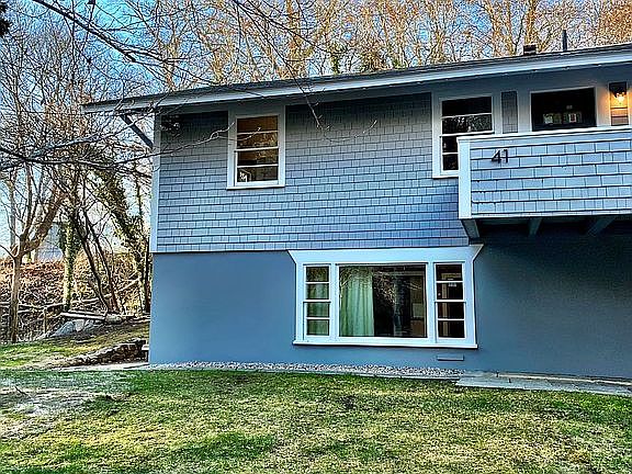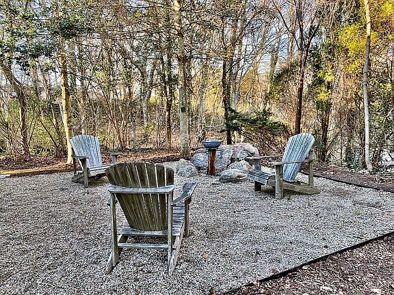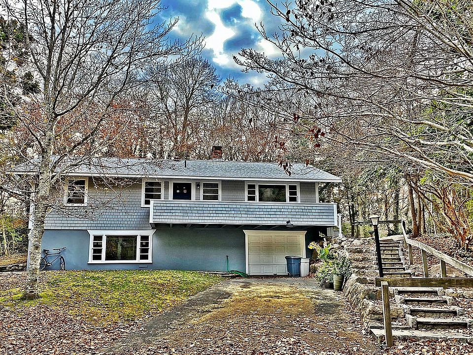 Tucked away at the end of a wooded lane. Cozy contemporary home, walls of rare cypress paneling, vaulted ceilings, wood floors, open living/dining area , fireplace and renovated galley style kitchen. Three bedrooms and two bathrooms on main upper level. Recreation room on lower level with patio, fireplace, bathroom, kitchenette and laundry area. One car garage, peaceful grounds and front deck.