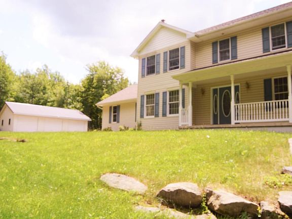 Set back from the road on 5.61 acres surrounded by mature trees, this 4 bedroom, 2.5 bath home offers a tranquil sanctuary minutes, from Rte 84, and Lake Wallenpaupack. 9 yrs new, with full basement, attached 2 car garage, impressive front porch, spacious eat in kitchen, and a full basement ready for your finishing touches. From the moment you enter the elegant foyer, this home speaks of gracious living with ceramic and hardwood flooring throughout