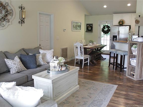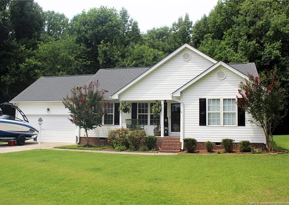 Charming 3 bedroom 2 bath split floor plan home on just under an acre located in a quiet cul-de-sac between Sanford and Lillington in a one street neighborhood. Rocking chair front porch for those lazy evenings. Country charm kitchen with shiplap backsplash, breakfast bar, stainless appliances and open to living room with laminate floors. Spacious & private backyard. Large 2 car garage. HVAC just 1 year old. Hurry! this wont last long.