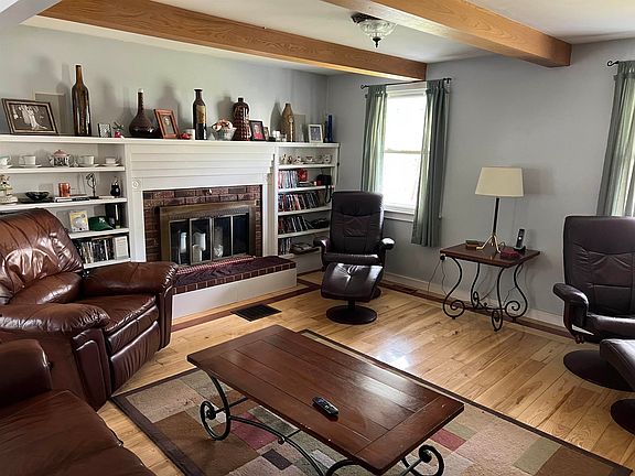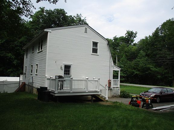 OPPORTUNITY KNOCKS!! BACK ON MARKET due to Buyers failure to secure financing. Updated dormered gambrel with welcoming oversized porch with many custom features, great for entertaining! Gleaming inlaid hardwood floors, beamed ceilings, replacement windows, newer appliances! Enjoy your spacious family room with builtins, fireplace, sliders opening to an oversized 12 by 22 composite deck leading to a cozy fenced yard with beautiful gunite pool! Entertain your guests in a welcoming kitchen, newer appliances; Kenmore Elite fridge, GE Oven, Kitchen Aid DW, LG microwave with 6 ft island and custom service station opening to separate beamed dining room with gleaming hardwood floors! Modern tiled 1/2 bath. Upstairs relax in your primary au pair suite. Two newly carpeted bedrooms, and additional 3/4 bath make this home ready for you to make wonderful memories. Additionally, newer dbl pain windows, vinyl siding, make this a recipe for easy living. An adorable two story play house with cable and electric.Easy showing through Showingtime!