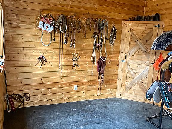 41 Gallatin A Horse lovers paradise! Nestled at the base of the Big Horns and looking over the world renowned Big Horn Equestrian Center. This beautiful, 2800 square foot, log home is the perfect place to call home. Private master suite adjoining the lofted bonus room. Chef's kitchen w/premium stainless steel appliances, dining area and kitchen nook. Grand fireplace anchors the living room surrounded by huge panes of glass providing views overlooking your 15 acre horse pasture, the polo field and you will never miss the sunset on the horizon. Walkout lower level family room, art studio/rec room w/ pellet stove. bedroom laundry and heated 2 car garage. The barn is built with style and convenience. 2 horse stalls with frost free water, finished tack room with hot and cold w
