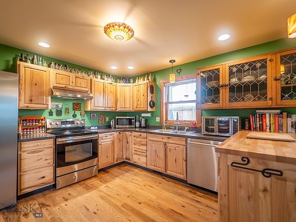 Views, Views, Views Custom Built Home on 20 Acres with amazing views. Watch the sunset to the West over the Gallatin Range at the same time looking East to see the alpenglow on the Absoraka-Beartooth Mountains. To the North the Crazy Mountains are framed by the canyon to Livingston. The home has a front and back Decks to capture both the sunrise and the sunset.