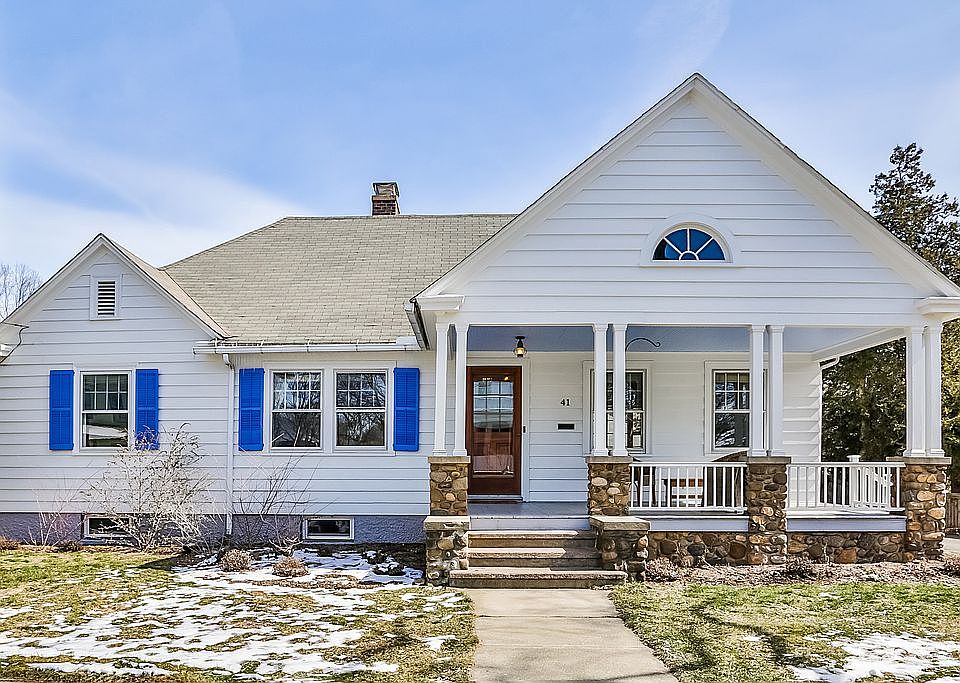One Block to the Guilford Green. A delightful 1926 Craftsman style home has a large covered front porch and remodeled kitchen with high-end appliances, and a master bedroom on the 1st floor and original wood work. Off the entry foyer the formal dining room has a built-in cupboard and the formal living room, with stone fireplace, is spacious and welcoming. The casual space between the LR and the kitchen has been used as a sunroom, breakfast room or an extension of the living room. Newly remodeled bath and two BR on the first floor and a third bedroom upstairs. The expansive, dry basement, can host myriad activities and is ready to be finished. The new natural gas heating system is very efficient. The large lot has well established gardens, an ornamental pond, a potting shed, two car garage. There is expansion potential with this house. Located on a quiet side street the in-town amenities are close at hand: the library, Green, shops, restaurants, community center, commuter train and the shore. If you have dreamed of living in the Village - this is a golden opportunity.