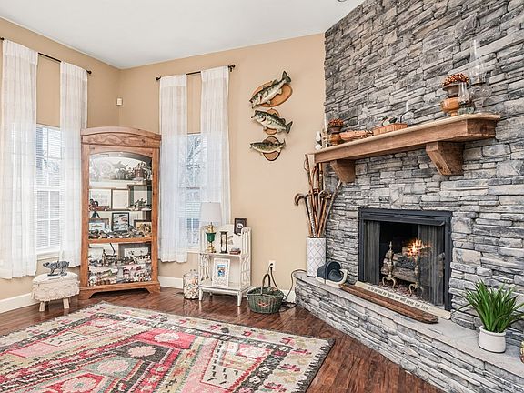 Waterfront Living on a large level yard with fire pit, and private dock!! Other features include stacked stone fireplace, vaulted ceilings, island in kitchen with bookshelf & storage, pantry, walk-in shower, jetted tub, screened In Porch with full Lake views, private deck off owner's bedroom, 2 Car Garage and a 10x20 ft Storage Shed for starts. Want move in ready? Owner would consider selling bunk beds that sleep 8, other furniture and pontoon for the right price. Buyer to verify all measurements and information prior to making an offer.
