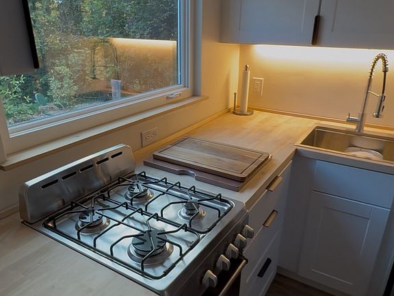 -One bedroom apartment w/flex room that can be 2nd bedroom, living room, or office -Eat-in kitchen w/stainless steel appliances , kitchen island, butcher block countertops, under cabinet lighting -Full bath with tub -Wood shelving -Glass, mirrored doors makes a brighter space -Louvered cordless blinds in each window -Grassy backyard -Bluestone patio and garden seating -Private dedicated entrance -Parking for one car included -Can be furnished or unfurnished -Quiet neighborhood on one way street -Walk to Roundout Strand dining, shopping, galleries -Walk to Rail Trail, Kingston Point Park/Beach -5 minutes drive Home Depot, Target, Sam's Club, ShopRite, Midtown, Uptown, Bus Station -Easy access 9W, New Paltz,, Woodstock, Kingston Rhinebeck Bridge, Saugerties, Rosendale Please include with your inquiry: -Indicate credit score 700+ -Annual Income (should be 3x rent or more)/occupation -Number of occupants -Pets if any Tenant pays electricity, internet and natural gas Landlord pays water and garbage removal Tenant is responsible to clear snow from their walkway and parking spot Pet rent is $25 with maximum of 2, on a case by case basis Pet fee of $200 will be taken out automatically from deposit at end of occupancy Unit has no laundry facilities No smoking in the apartment