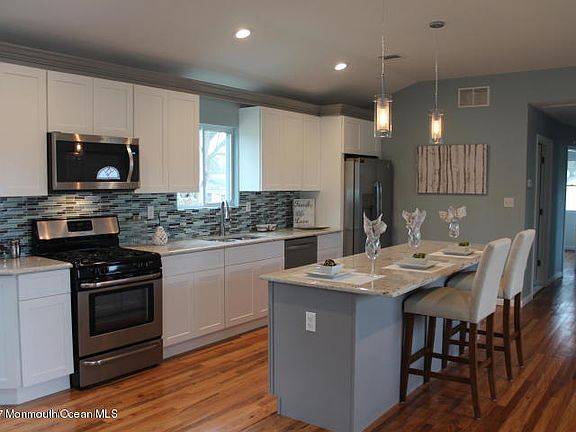 Beautifully and completely renovated ranch in Bayville. This home boasts 3 bedrooms and 2 full bathrooms including one in the master suite along with a walk in closet. There are hardwood floors, vaulted ceilings, recessed lighting, trendy fixtures, and plenty of closet space throughout. The kitchen offers upgraded cabinets and beautiful granite counter tops with stainless steel appliances and is open to the living and dining rooms. Quality work shines through inside and out. Photos are from the same model previously renovated, all finishes will be identical.