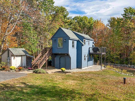 Tiny House Living without wheels! Discover flexible living in this unique Meredith home nestled on 1.15 acres surrounded by nature. Upstairs, enjoy a bright, modern space featuring a stylish kitchen with a large island & dining area, a bedroom with a Murphy bed that easily transforms into a cozy living room, a sleeping loft (can also be used as storage), and a beautifully updated ¾ bath. The lower level—originally designed as a garage and wood shop—has been reimagined into a spacious living room & office, with a brand-new ½ bath just added. Both levels have separate exterior access, offering great potential for an in-law, rental, or studio use. Step outside to enjoy the serene surroundings from a treehouse-like front and side deck, and a covered rear deck perfect for relaxing or entertaining. The property also offers an attached storage space ideal for tools or a workshop, plus two sheds for even more storage. Conveniently located just 6 minutes from downtown Meredith and close to Route 104 and I-93, you’ll have easy access to shops, dining, and commuting routes. As a Meredith resident, you’ll also enjoy access to Lakes Waukeewan, Wickwas, and Winona, plus free resident access to Lake Winnipesaukee at the town docks. Freshly painted, fully updated, thoughtfully refreshed, and move-in ready—this home offers modern comfort, versatility, and a true connection to the Lakes Region lifestyle. Quick close possible! Call to schedule your showing today!