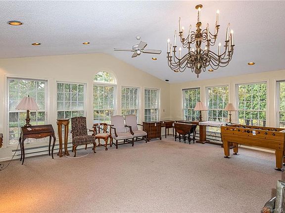 This lovely New England Cape is nestled on nearly an acre in the picturesque town of Bolton, Connecticut. The property has beautiful mature plantings including birch, maple, and tulip trees, with blueberry bushes and grape vines, to boot! The heart of the home is the Great Room with walls of windows and tons of light! Looking out of the palladium windows of the Great Room, you'll see the private backyard abutting the town nature reserve, and a lovely brick patio, perfect for backyard entertaining. The kitchen overlooks the Great Room and is equipped with double ovens, an electric cooktop, two sinks, and plenty of storage. Upstairs, sweeping vistas from the bedroom windows offer a stunning view on clear days. This home boasts four bedrooms - three upstairs and one on the main floor - and two full baths. Also on the first floor, is a large formal living room with fireplace, and a dining room with built-in corner hutches. This home has so much to offer, and needs a new owner to breathe life into it and make it come alive again! Call today for an appointment. Agent/owner related.