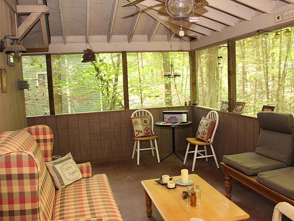 There's no place like home... unless you are vacationing here! This true Mountain Chalet can be yours, complete with furnishings and decor. Soaring cathedral ceiling in the living area, wood accents throughout and a wall of windows allows for perfect natural lighting. Two bedrooms and a loft, 1 1/2 baths, and a wrap-around screened porch complete the picture. The property is over 300' deep and backs up to private lands. Owners and their guest enjoy access to 3 private lakes, golf, indoor and outdoor tennis, swimming at pools and beaches, skiing and tubing, and much more. The gates are manned 24 hours a day, the private security patrols day and night, and the public water and sewer system has just been fully revamped. Asking $120000 but willing to negotiate reasonable offers.