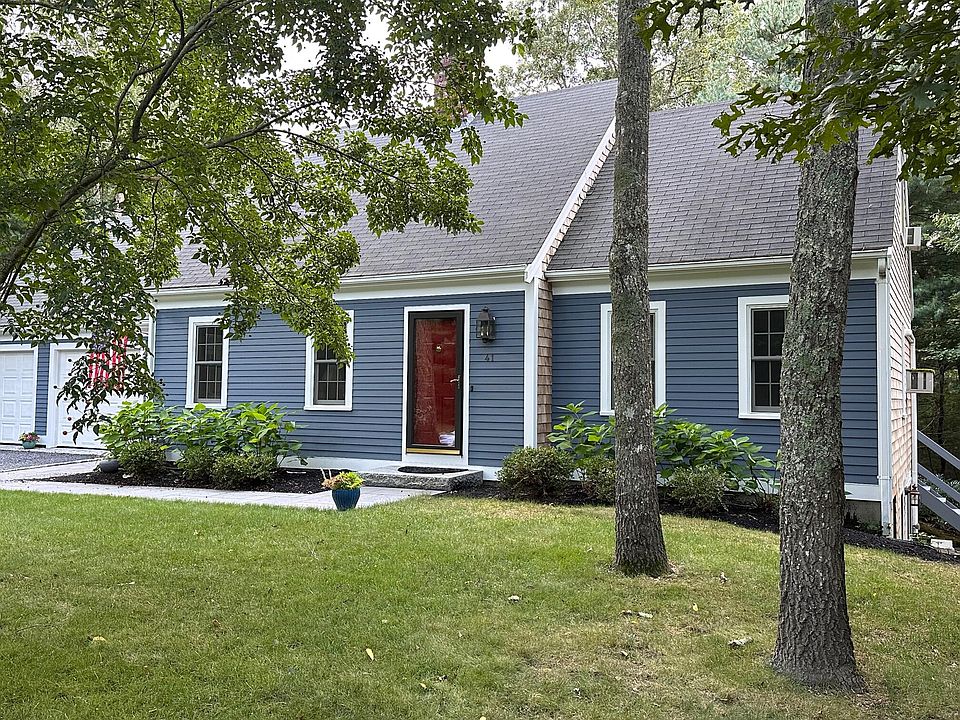 Refreshed Cape with charm , charm, charm. The owners want you to fall in love with this home and picture yourself living in comfort from the moment you step foot inside, The living room features a center fireplace with Mendota gas unit that can heat the 1st floor on cool nights. White quartz countertops were just added to compliment the white kitchen, stainless appliances and breakfast nook boasting new bump out bay with window seat. A slider from the dining room leads to a three season sunroom privately positioned for enoying lazy summer afternoons. Need one floor living? The primary bedroom is a sanctuary with mini-split a/c unit, new carpeting, updated bath with tile shower and heated floors. Upstairs are two bedrooms with new carpet, another updated bath plus home office. A nice surprise is the finished heated room in the walk out lower level - ideal as a workout room, art studio, crafter's haven. Add a two car garage, first floor laundry, septic upgrade (2023), newer Anderson windows, newer well pump, fresh paint, power washed exterior and this is a must see property! Did I mention the neighborhood - Rolling Ridge Farm - has assoc tennis and beach on Lawrence Pond.