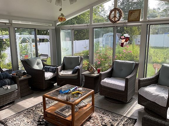 This ranch is situated in the 16 acres neighborhood, close to shops and restaurants, but private and serene. The seller has taken care of several of the big ticket items for you. A new roof, solar panels and a freshly paved driveway. You have plenty of room for guests around the holidays with three bedrooms and an updated bathroom with large walk in shower. The kitchen has lovely stone countertops and a tiled back splash, Enjoy the ease of serving large gatherings with the dining room located right off of the kitchen. Wind down in your large heated family room with bright sunny windows or sit outside on the attached deck. The yard is lovely with perennials, fruit trees and sheds for additional storage. Need more space? The finished basement with a new pellet stove could be used as a rec room, craft studio or whatever you desire. The oversize garage completes this stylish and comfortable home,