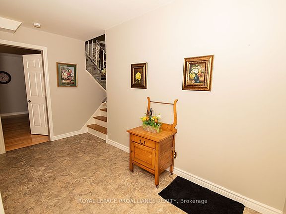 Welcome to 41 Hope Crescent, a beautifully cared-for 4 level side-split tucked on a quiet, family-friendly crescent in Belleville. This 3-bedroom home offers warmth, comfort, and thoughtful updates throughout. The main level features a bright living and dining area with hardwood floors and large windows that fill the space with natural light. Step down to the spacious sunken family room, complete with hardwood flooring and a gas fireplace perfect for relaxing evenings or casual gatherings. Walk out to your expansive two-tier deck with a fresh coat of stain overlooking a private, tree-lined backyard, ideal for outdoor entertaining. The 3-car tandem garage provides ample space for up to 3 vehicles or boat, hobbies, or storage, and includes a rear garage door with backyard access. The finished basement adds extra living space with large above-grade windows, a shower, great for guests or extended family. Recent updates include a newer furnace and shingles replaced in 2018, offering efficiency and peace of mind. Set in a quiet, established neighbourhood close to parks, schools, and all amenities Belleville has to offer.