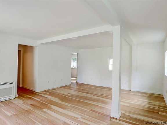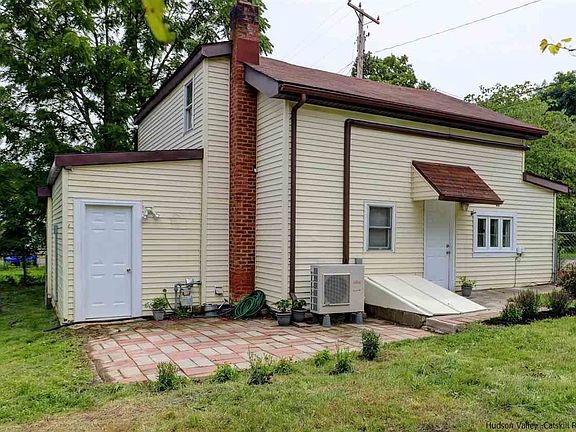 Newly renovated home in Uptown Kingston with classic 1900 charm on the exterior, modern minimalist style on the interior and three outside entertaining spaces. 12 minute walk to Trailways, 15 minute walk to the Stockade District, centrally located to all that the Hudson Valley and Catskills have to offer. The living room, kitchen, bonus room and walk-in closet are downstairs and feature newly installed wood floors. The bright and airy living room has versatile space perfect for various configurations. The kitchen features a new Whirlpool refrigerator and Samsung gas range, a subway glass tile backsplash behind the sink and range, a rolling cart with butcher block countertop and an eat-in area with bay window. The corner light-filled bonus room has two windows. Its usage is left to your imagination - den, office, studio, or dining room are all possibilities. Off the bonus room is the utility room with a new Samsung washer and dryer and newly installed hybrid heat pump / hot water heater and linoleum floors. Also downstairs is the black and white art deco inspired bathroom featuring a newly refinished antique bathtub and a marble sink counter. The bathroom is conveniently located next to the walk-in closet. Upstairs are two bedrooms and an oversized landing. The primary bedroom has a ceiling fan, barn style doors in front of the storage area and two large windows. The second bedroom has a closet and two windows at the corner. There is extra space off the landing that could be used as an office, closet or potentially a second bathroom. Note all rooms upstairs are carpeted. All rooms throughout the house are freshly painted. New HVAC splits (two condensers/zones) are in the living room, bonus room and both bedrooms. The electrical system and foundation have been recently upgraded. The magic continues outside with a wonderful flow between the interior and the exterior. Versatile entertaining space with a patio and large yard (mostly fenced in) with a mix of mature trees and shrubs with newly planted flowers on one side of the house, and a screened porch and deck on the other side of the house. Perfect for full-time or part-time residents, investors and Airbnb owners. Come be a part of the renaissance of Kingston! Note listing agent is owner. Some photos may have been taken with a wide angle lens.
