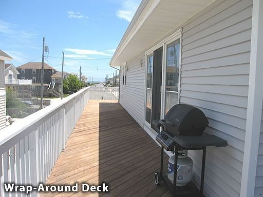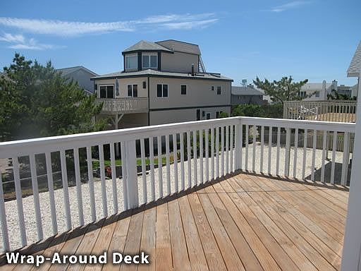 Tucked away in a quiet residential setting this immaculate upside down home is truly a retreat from the hustle and bustle both on and off the island. Enjoy cool breezes and surprising ocean, inlet and wetland views from your wrap-around deck, living room, and master bedroom. Both baths have been renovated with new tile, vanities and granite counters. Pergo flooring has been installed throughout the first floor bedrooms and family room making the home easy to maintain. The upside down floor plan allows for plenty of space for mom and dad and the kids. The first floor family room is ideal space for the kids to claim as their own while Mom and Dad relax in the second floor great room with cathedral ceilings or the large wraparound deck to enjoy the water views. There is plenty of space in the outside yard too for a family barbecue. The attached garage is ideal to store all of the water and beach gear, bikes and fishing gear you acquire here at the shore. This home is ready for your family’s summer 2011- never a rental, lovingly maintained – just move in and bring your beach gear!