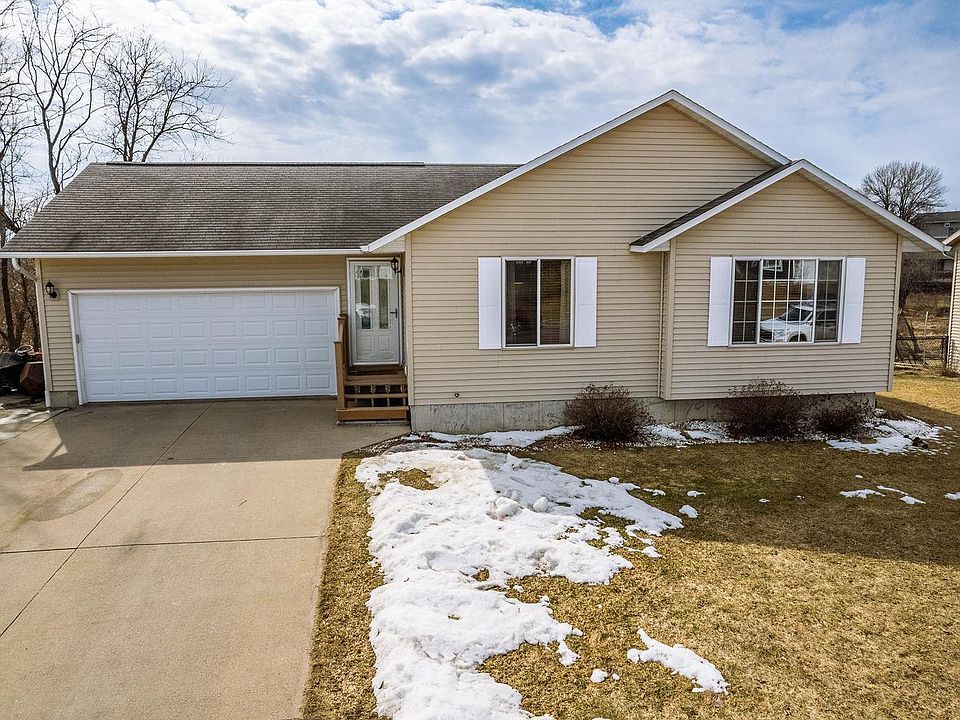 Welcome home to this modern 4-bedroom, 2-bathroom ranch with ample space for your family and guests. The office is perfect for working from home or as a quiet space for studying or hobbies. The inviting open floor plan and breakfast bar make for convenient meals and entertaining. This home also features a walkout basement, 2 decks, and a patio, providing abundant outdoor living space for relaxation, grilling, and entertaining, and the wetlands behind the home allow for extra privacy. The 2-car heated garage with above storage space and extra wide driveway provide for ample parking and storage. Overall, this home offers spacious and comfortable living with stainless steel kitchen appliances included. Don't miss out on the opportunity to make it your own!