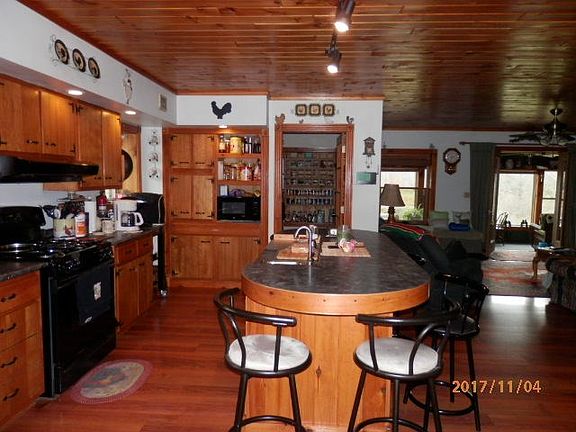 Ranch home with finished walk-out basement with approx.75 acres and spring fed ponds located on a dead end country road, and includes your very own camp! If you want peace and quiet and beautiful views this could be the home for you. Custom-built in 2004 with cedar shake siding, two car attached garage, and a detached garage used as a workshop. Home features a poured foundation, in-floor radiant heat, tongue and groove ceilings, and underground utilities. The views are incredible. Well-appointed kitchen with an abundance of cabinets, kitchen isle, and a walk-in pantry with built-ins for spices, plus new double oven-range & dishwasher. And, newly installed high-efficiency boiler.