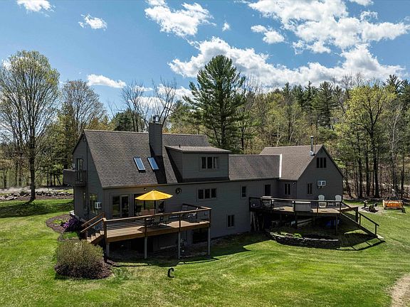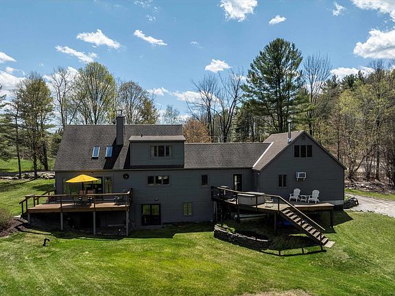 Experience the best of country living in this spacious and elegant home in West Brattleboro. This outstanding property boasts over 3000 sq. ft. of living space, with plenty of natural light and long range mountain views. The home features a stunning open kitchen/dining area with maple cabinets and quartz countertops, ideal for entertaining. One will find amazing hickory flooring in the main living area, lots of natural light, and a full walkout basement with new carpeting. Enjoy the outdoors from the two large decks, one with a hot tub for watching the stars. An expansive backyard is ideal for hosting gatherings or relaxing in nature. The home also offers a gym/exercise room, an office, a mudroom, three garage bays, and ample storage space. Situated on 3.36 acres of private land, this home is only two miles from town and close to all amenities. This exceptional property has received thoughtful upgrades, like the newer septic leach field and heating system. In short, this property is at the top of its game. This is a rare opportunity to own a gorgeous home in a prime location. Don’t miss it!