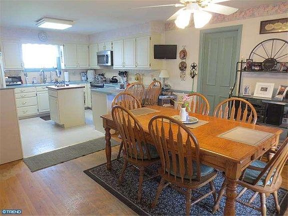 Welcome to this well cared for home in Quakertown. This 3 bedroom, 1 1/2 bath colonial on a beautiful treed street has a large eat in kitchen with pantry/breakfast bar and breakfast room with built in cupboard. From there you enter a large dining room with crown molding, chair rail and another built in cupboard. The living room has chair rail,crown molding, and recessed lighting along with a beautiful brick fireplace with heatilator for those chilly nights. There is an enclosed sunroom off the kitchen and living room. To complete the first floor there is a 1/2 bath off kitchen. There are three very nice size rooms upstairs with a large full bath and double sinks. There is a floored attic for additional storage along with a finished basement and more additional storage along with second kitchen. The basement has an outside exit. There is a two car garage with a large driveway that was recently repaved. The upstairs and downstairs have hardwood floors. Let's not forget the nice size patio out back for those family get togethers and the front covered porch. Upgrades include new stove, dishwasher, microwave and enclosed sunroom. Showings begin May 14, 2014. More pictures to follow soon. Working on removing carpets to expose all the hardwood floors.