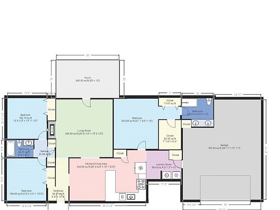 Schedule a showing today in the well sought after subdivision of Carolina Seasons! Accommodating 3 bedrooms with 2 full bathrooms at 1743 sqft nesting on a half an acre lot. Tastefully renovated kitchen equipped with ample granite countertop space extending with a large peninsula accented by tiled backsplash, stainless-steel appliances, and luxury vinyl planks for easy cleanups. Tucked away at the garage entrance you will find the laundry/mud room and a cozy study to seperate the kitchen. Living room consumes 346 sqft which includes a piercing skylight bringing natural lighting throughout the day and gas fireplace. Guest bedrooms provide plenty of space and share 1 full bathroom. Opposite side of this home sits the Main bedroom with his reach-in-closet, her walk-in-closet, exterior entrance door and a complete bathroom arranged with double vanites and walk-in shower. Out back you will find a large 240 sqft covered porch that light houses a symmetrical well sized back yard.
