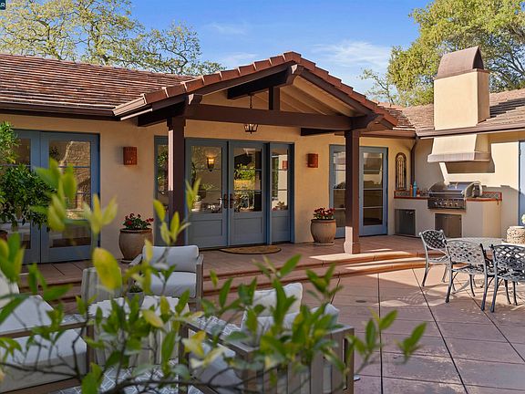 Rarely does a home like this come to market! Top quality, on a favorite street studded w/ gorgeous homes, & mature Oaks, around the corner from OrindaCountry Club w/an incredible layout & magical spaces indoor & out. Completely remodeled in 2000, yet keeping with the “hacienda” charm of its original1948 design, 41 La Noria is as good as it gets! Enter through custom gates into the gorgeous & spacious, yet quaint & private courtyard w/built-in fireplace,BBQ & sets of french doors to entry & formal living/dining room perfect for year round living, dining & entertaining inside & out. The entry level boasts a large updated eat-in kitchen, living room, dining room, primary suite w/oversized steam shower, tub & dual vanities, as well as three additional bedrooms, 2full baths & laundry. The lower level has a spacious family room, w/walls of built-ins & high ceilings & sliding doors out to the backyard lawn & gardens w/adjoining access to the upper yard & entry courtyard. The fifth en-suite bedroom is on this lower level perfect for guests, au-pairs or in-laws. An oversized 2-car garage with high ceilings, attached gym & wine storage complete this perfectly laid out & well appointed home. All this in a beloved neighborhood close to commute, Orinda C.C. town & k-12 top rated schools!