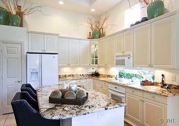 Gorgeous lake views from this beautiful 3 bedrooms 3 full bath light and bright home in the exclusive community of BallenIsles.Double glass door entry leads into high ceilings, tile flooring, crisp and light designer toned walls and arched and columned architecture; Lovely living room with long picture window and trey ceiling; Large separate dining room with lattice like ceiling detail and arched column entry; Private custom office with french-door entry, custom cabinetry, and faux painted walls. Exquisite gourmet kitchen and adjacent family room fitted in white cabinetry and custom built-ins overlook patio and pool through large sliding glass doors; Kitchen features granite counter seating, pantry, and white appliances.