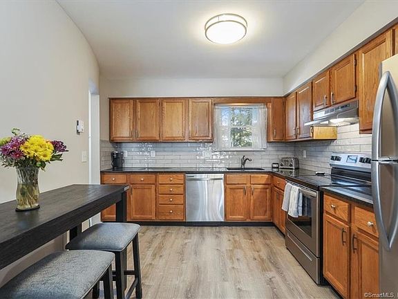 A Must see. Outstanding 2 bedroom 1.5 bath Townhouse in great condition! You can move right into this spacious townhouse style condo featuring many updates. The kitchen was done less than 2 years ago with stainless steel appliances, granite counter tops, floors and new light fixtures. Light and bright full dining room, living room has laminate floors and slider to back patio. Upstairs you will find a spacious master bedroom with newer wall to wall carpeting, skylight and walk in closet. Truly move-in ready. You will also find a second bedroom on this floor with newer carpet and soft colors. The main full bath on second floor was tastefully remodeled too. Don't miss it! Easy commute into New York City. Schedule your private showing today. Contingent upon seller finding suitable housing. This one will not last. Pls Check agent notes for investor restrictions