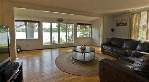 IF YOU LIVED HERE THIS WOULD BE YOUR VIEW! WATERFRONT living with private dock on beautiful Martin's Pond. Enjoy your days on the water boating or fishing, then grill on the patio or relax by the fire pit in the evening. Pond frontage allows year round water views from house & yard. This custom home offers a cherry kitchen with separate dining area which opens to spacious living room with one full wall of windows overlooking the water. Generous master bedroom with 2 closets and private bath. Two more bedrooms plus office, laundry room, and another full bath on 2nd floor. Watch the sun rise while you sit on the covered 2nd floor balcony and sip your morning coffee. Two car garage has been recently redone and has plenty of extra space for home workshop. Central A/C, central vac, new hardwood flooring upstairs, most of interior has been recently painted, new shed and new GAS LINE to house is ready for conversion of heat, cooking, etc. RELAX AND VACATION AT HOME EVERY DAY!