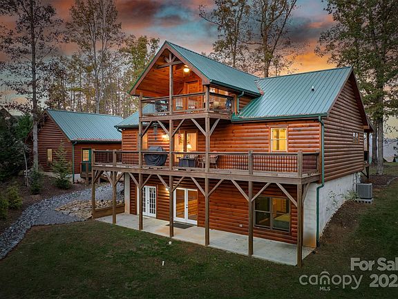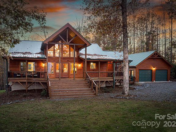 Don't wait! Plan your trip to come see this rustic mountain home tucked away in the Blue Ridge Mountains of Western North Carolina! Located on a level 2 acre homesite in the celebrated gated community of Grandview Peaks. Enjoy gorgeous sunrise mountain views from the huge covered front porch & all the natural wonder of the forest from the back deck. Thoughtfully designed home offers a large primary bedroom & en-suite bathroom w/ walk-in tile shower & his/her closets. Open concept living centers around a great room w/ high ceilings & gas stone fireplace. Spacious kitchen boasts granite counters, gas cooktop & stainless appliances, tons of storage & a walk-in pantry. Laundry/mud room leads to screened porch & detached 2-car garage. Loft is perfect for home office or library. Guest bedroom & full bath also on main. Finished basement has second den, guest bed & bath & storage w/ additional storage in unfinished portion. Watch the deer & turkey run through your backyard. Tranquility awaits!