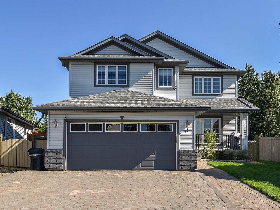 This spacious 2360 sqft air-conditioned home on a truly beautiful estate lot backing trees has no rear neighbors! The great floor plan includes a den with French doors, walk-through pantry with laundry, and 2-pce bath off the mud room. The roomy kitchen features a Jenn-Air gas stove with double oven, plenty of ceiling-height cabinets, and overlooks the living room with lovely fireplace. Garden doors lead to a gorgeous stone deck and patio with tranquil, natural views! Upstairs you'll find a large bonus room, 3 bedrooms, with the huge master suite featuring a lovely walk-in closet/dressing room and a 4-pce ensuite with separate w/c. A 5-pce family bathroom completes this level. The basement is mostly finished and has a 4-pce bath, 2 more bedrooms, huge family room, triple-thick laminate w/ extra foam insulation beneath. Recent updates: HWT (1 yr), shingles (3 yrs), fridge (2 yrs), washer (2 yrs), microwave (1 yr). Located in an ideal location near trails and parks, this is a super home to grow your family!