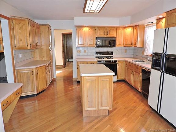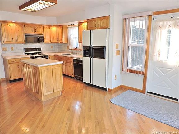 This bright and sunny 4 BR Cape features an open floor plan with vaulted ceilings in the dining area, a remodeled kitchen with loads of cabinets and an island The spacious living room and 2 first floor bedrooms, all with hardwood floors finish off the first floor. The second floor has 2 bedrooms - 1 with hardwood flooring and storage. A 4-zone heating system with warm air and hot water baseboard & radiators along with central air make this a very efficient home. Also city water and a well for lawn watering and car washing adds to the cost savings. The double door walk-out basement can easily be made into a garage under. Located on a cul-de-sac very close to I-84 makes it a great place for commuters.