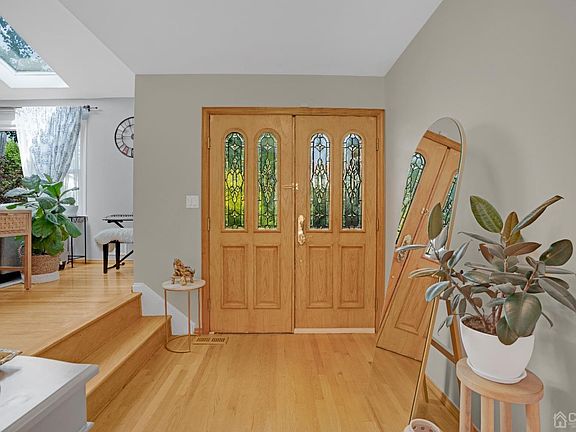 This sunlit manicured landscaping East facing 5 bedrooms 2.5 baths colonial/split home offers 2 bedrooms on the ground floor. Hardwood floors throughout. Large foyer entrance leads into the living room with cathedral ceiling and two large skylights. Balconied formal dining area that continues into a nice size kitchen. Kitchen offers ceramic floor tiles, 42 inch lacquer kitchen cabinets, granite countertops, deep sink, stainless steel appliances with an updated wall oven and refrigerator, recess lighting, sliding door from kitchen to the backyard and a huge skylight for ample natural light. Family room with wood burning fireplace w/crown molding and a back door access into the yard. Adjacent to family room is the laundry room with LG front load washer/dryer, extra cabinets for storage and a granite countertop folding station. Powder room with linen closet storage. One large size bedroom on ground floor with closet organizers, crown molding plus, another bedroom near foyer entrance that can be used a bedroom/office space. Primary bedroom w/crown molding, recess lighting, ceiling fan, WIC w/closet organizers & updated primary bath (2021) with standup shower, built-in indent shelves in shower with wood like tile. Two additional bedrooms with crown molding, ceiling fans and closet organizers. Updated main bathroom (2021) with double sinks and tub shower with indent shelves. Fully finished basement with laminate flooring, wall paneling, recess lighting with crawl space for storage and cedar closet with organizer to store your winter clothes away. Finished 2 car garage with painted floors (2024), proslat wall storage system and brand new garage motors(2024). All around double tier deck recently painted with a nice size leveled backyard and playground set. AC(2018), HWH(2012), updated windows and updated hardwood floors. Home is situated in the heart of Edison with North Edison schools (JMP/JMI, John Adams, JPS), close to Metropark train station to NYC, close to all major highways and shopping. Last chance to own this beautiful and well maintained home before the new school year begin! Don't miss the chance to just unpack and move right in.