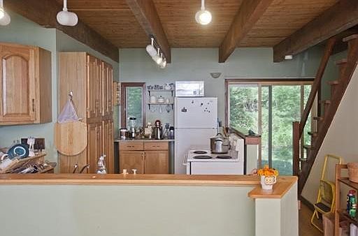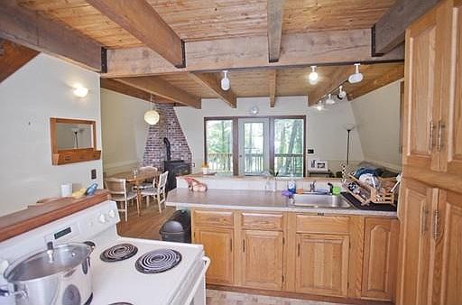 Need a retreat home or a home office with private entrance? This one's for you! 3 floors of living with lots of storage, nice deck off the front and a new sliding glass door out the back. You'll have lots of privacy here, being that this is an end cottage. Walk-out basement could be your home office which features a small bedroom, a wall of closets and the enclosed laundry room. Main level is an open floor plan with exposed beams, wood flooring, kitchen with counter island and living room with pellet stove to keep you warm in the winter. Have your morning coffee right out on the large front deck. 3rd floor has two bedrooms, the front bedroom is your master with another wall of closets and sky light to star gaze. Freshly power-washed house and deck means everything is bright and clean. This gem is not to be missed....Schedule your showing today.