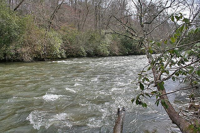 ON THE ETOWAH RIVER - And pristine frontage it is on this 41+/- acre tract located south of Dahlonega, GA. Along here the river flows from strong and deep to fast and noisy. High gentle ridgelines offer up Blue Ridge Mountain views from the top of the property and down on the river is a flat terrain cove with scenic native foliage and canopy. Through the cove is a pretty little mountain creek that flows straight into the Etowah. The river along here is very pretty and there's a lot of it. You can walk along the whole length, up maybe towards a quarter mile of fine flowing waters. Some of it is whitewater strong, other sections are deep and mysterious. Access is a bit primitive but the property rewards with a scenic serenity.