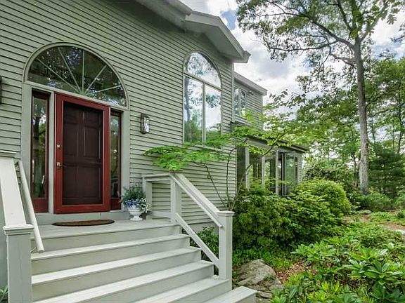 Custom-built, beautifully landscaped, passive solar home on Bullhead Pond. Views of pond/gardens from every room. Stone walls surround patio overlooking pond. Canoe, fish or ice skate on your secluded retreat min. from Wakefield & area beaches.