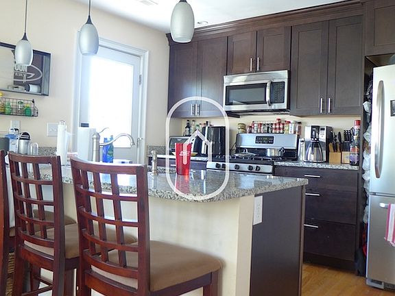 Expansive & Sunlit 5-Bedroom Duplex Bedrooms: Five spacious bedrooms with closet space Bathrooms: Three fully renovated bathrooms Living Space: Huge open concept living/dining area Kitchen: Stainless steel appliances, gas stove, dishwasher, disposal, granite countertops Floors: Polished hardwood flooring throughout Comfort: Central air conditioning Laundry: In-unit washer and dryer Outdoor Space: Airy private front patio, large back deck, shared backyard Storage: Ample closet and storage space Parking: Off-street parking available Security: Modern key-less entry Location: Short distance to Star Market, easy access to Mass Turnpike, short walk to Boston Landing
