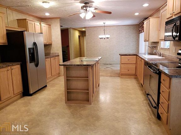 The large kitchen with island highlights this bright and spacious home close to McCaysville. Underground utilities; wood fireplace in the living room; master with ensuite and bonus office/sitting room. Two more bedrooms and bath located at the other end of the house. Master and second bedroom feature walk in closets. Formal dining room plus breakfast area. Large private deck on the back for entertaining or enjoying nature. All paved access,and low maintenance. Would make a great part time or full time home. A step above your typical manufactured home! Home has tie downs underneath.