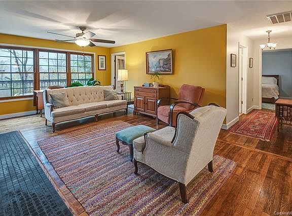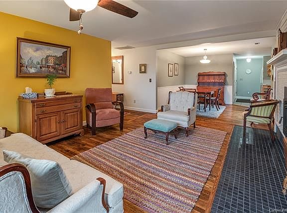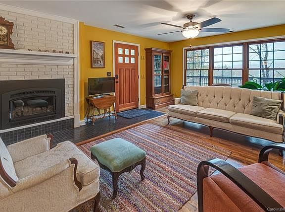 Back on the Market. 10K Price Reduction on this sweet find! Close to everything with lots of elbow room. Lots of improvements have been made to this charming and move-in ready farmhouse bungalow. It has a bright, open floor plan, hardwood floors, updated kitchen and 2 full baths, and a beautiful and efficient wood-burning fireplace for cozy nights. Newer appliances, heat and AC pump and well pump. New ceiling fans, light fixtures, blinds, bath fixtures, carpet & paint throughout. Enjoy peace, quiet and a great view of mountains on the wrap-around porch. Three bedrooms, including a spacious master with walk-in closet and two others with mountain views. Great Wifi access. Lots of storage. Level .62 acre lot with lots of wildlife, trees & privacy. Located on a friendly, quiet dead-end street, with easy access to downtown Asheville (20 traffic-free minutes), the shops of Black Mountain (10 minutes), Pisgah Brewing (1.5 miles) and Warren Wilson College (10 minutes).