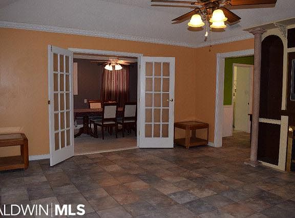 Step into completely renovated charmer right in the heart of beautiful downtown Foley. This versatile 3/2 is loaded with extras and updates, including popular "fantasy brown" granite in kitchen and bathrooms, designer shiplap accents in living room, breakfast area, and dining room, brand new Carrier HVAC, and tons of built-in shelving for storage and style. Eat-in kitchen has a large pantry and new stainless appliances and flows into spacious living area with vaulted ceiling. French doors open to separate dining and contribute to the open, airy feel. Laundry room is equipped with plenty of shelving for storage, as well as ample hanging space. Master has walk-in closet, vaulted ceiling, and attached bath. This comfortable home features tile and luxury vinyl plank flooring throughout, as well as fresh paint and updated fixtures. A spacious heated and cooled bonus room currently serves as an office/workout space, but could easily be used as a second living area or large fourth bedroom. Separate dining area could be repurposed, as well, giving this floor plan the flexibility to accommodate a large family in need of private space. The exterior of the home has much to offer, as well. Situated on a quiet street with no through traffic, families can enjoy peace of mind while still being within walking distance of Foley's elementary school, middle school, and historic downtown area. Extra wide driveway includes additional pad for boat or RV parking. Fenced back yard boasts a covered porch and terraced pavers that step down to an open patio, perfect for grilling or enjoying a lovely evening outdoors. New roof just installed. Schedule your private showing to see all this home has to offer. Owner is licensed real estate agent. Buyer or buyers agent to verify all information.