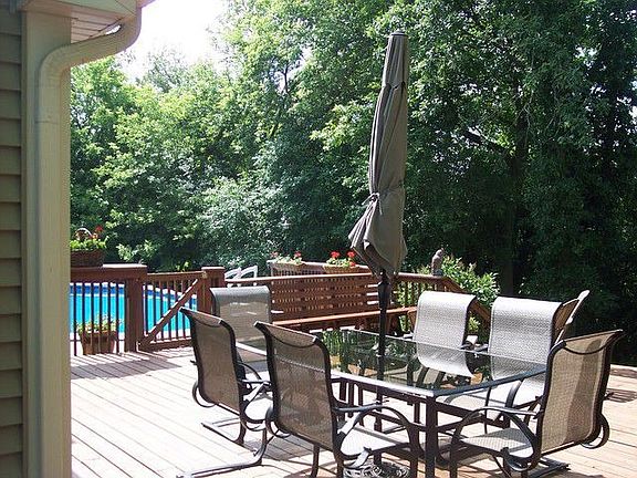 What a view! Cul-de-sac wooded with a Gazebo, deck, fire pit and above ground pool for your summer time enjoyment. Jenn Air range, newer washer & dryer. Sprinklers in the front & brick driveway. Ceramic MB bath. Fully finished basement offers a dry bar, large TV, built in book shelves bonus room w/full bath. Brick fireplace, open first floor plan. Decorative touches! Award winning schools, close to park and Metra.