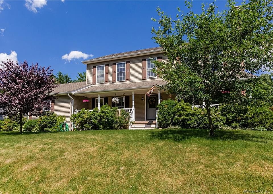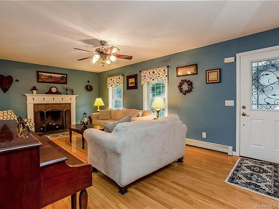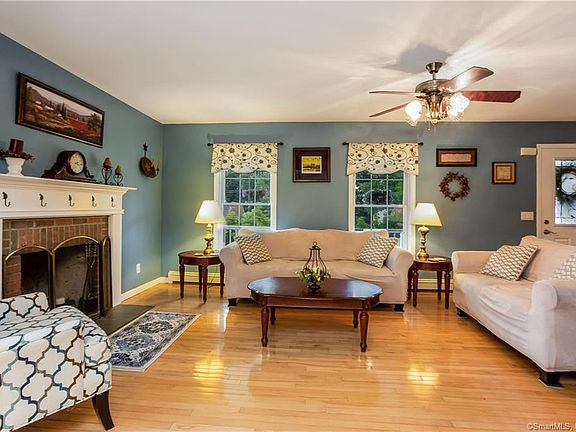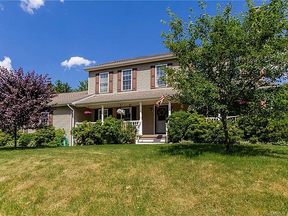 The large, covered front porch is inviting into this well maintained, open floor plan, 4 bedrooms, 3 bath colonial home located on Torrington's east side. Flooded with natural light, this home has fresh paint throughout. The kitchen features hardwood cabinets, an island, vinyl flooring, and is open to the dining room featuring hardwood floors and sliders out to the large deck, patio area with pavers and large level backyard, ideal for entertaining. The open concept continues into the spacious living room with hardwood floors and a fireplace. There is an office/den with hardwood floors and a half bath conveniently located on the main level. Upstairs you will find a large primary bedroom with full bath including tile floors, a shower stall and jetted tub. There are three more amply sized bedrooms with hardwood floors and ceiling fans and a shared bath with tub/shower and tile floors. The lower level is finished and includes a kitchenette area. this home features a split air-cooling system, wall units and a spacious 3 car garage. Book your tour today